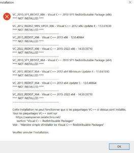 Problème lors de l’installation de WampServer : Visual C++ manquant